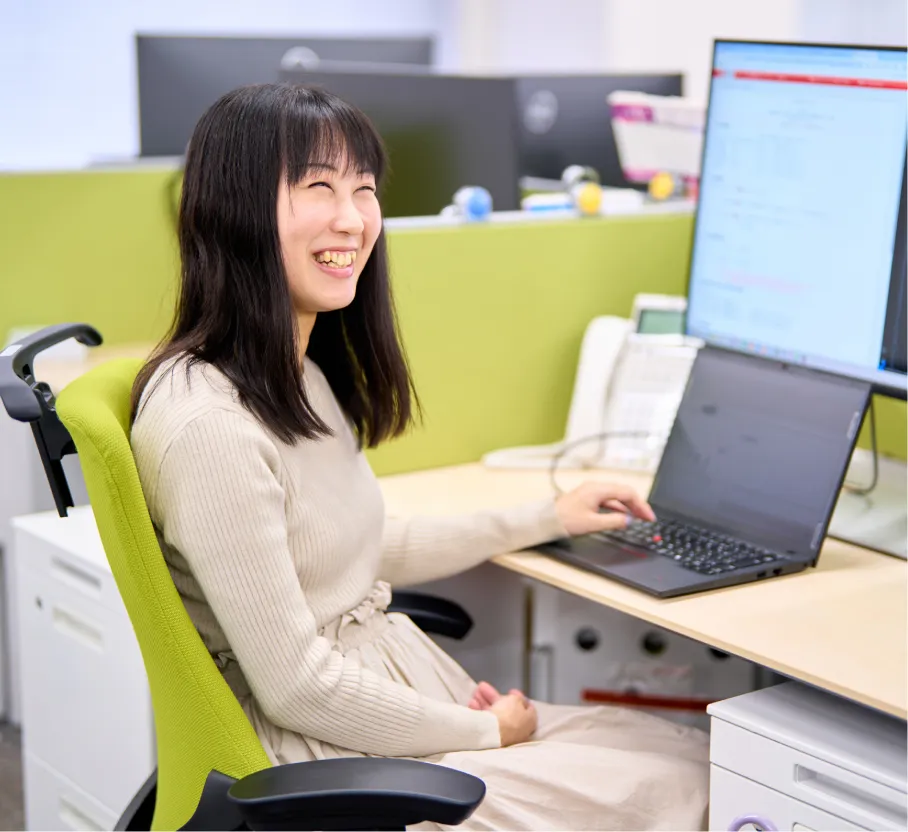 自分が考えた通りに動くシステム・プログラムを作成できたとき、この仕事の面白さ、奥深さを感じることができます。入社当初は与えられたタスクをこなすだけでしたが、現在は担当する業務について意見や提案を行ったり、自分からタスクを取りにいったりできるようになり、4年間の成長を実感しているところでもあります。